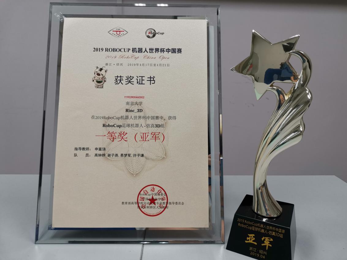 2019年4月18日-21日,2019 RoboCup机器人世界杯中国赛在浙江绍兴柯桥中国轻纺城国际会展中心举行。经过三天的激烈角逐,我系机器人智能与神经计算研究组(//52avone.net/rinc/index.html)的“Rinc_3D”团队(成员:高钟烨,谢子尧,易梦军,许子谦指导教师:申富饶)荣获仿真3D组一等奖(亚军)。