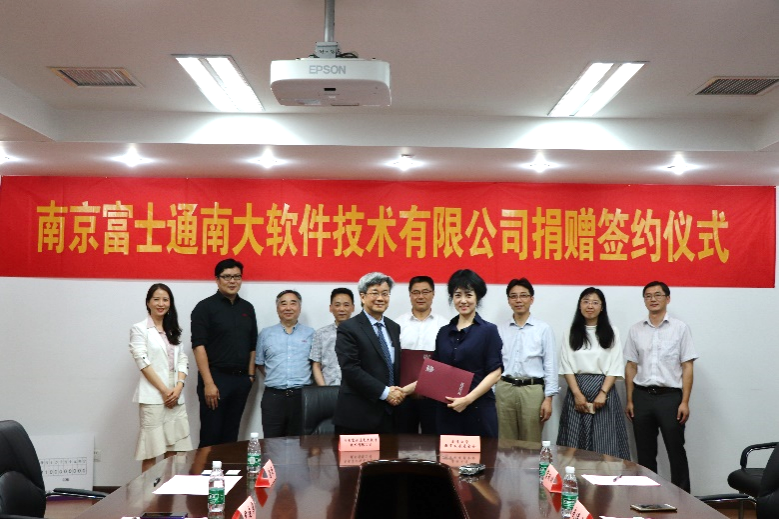 2019年6月11日,南京富士通南大软件技术有限公司捐赠签约仪式在我校仙林校区举行。南京富士通南大软件技术有限公司总经理长仓浩士先生一行,校党委副书记薛海林,发展委员会、资产经营有限公司、计算机系负责同志参加了仪式。仪式由发展委国内部主任王俊主持。