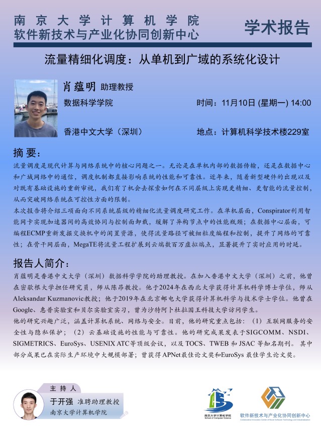2025年11月10日“软件新技术讲坛”学术报告 - 肖蕴明 助理教授