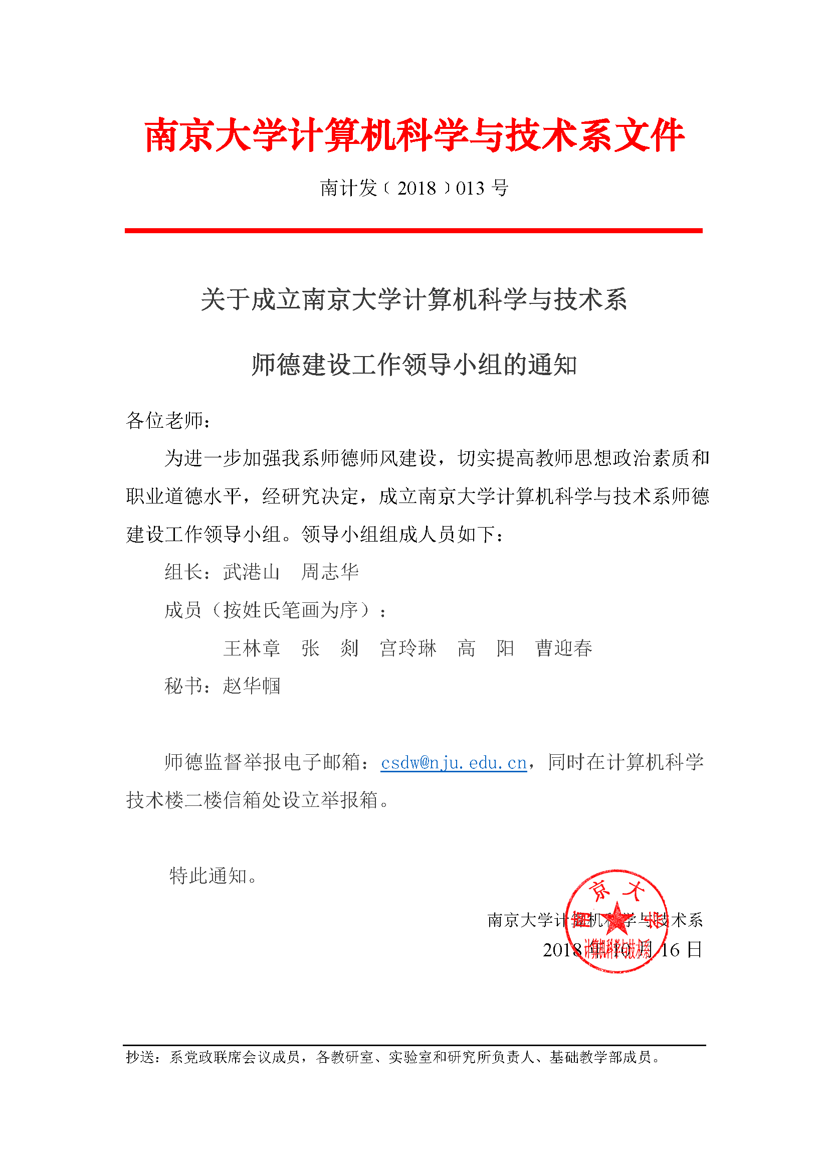 关于成立 52AV 计算机科学与技术系 师德建设工作领导小组的通知
