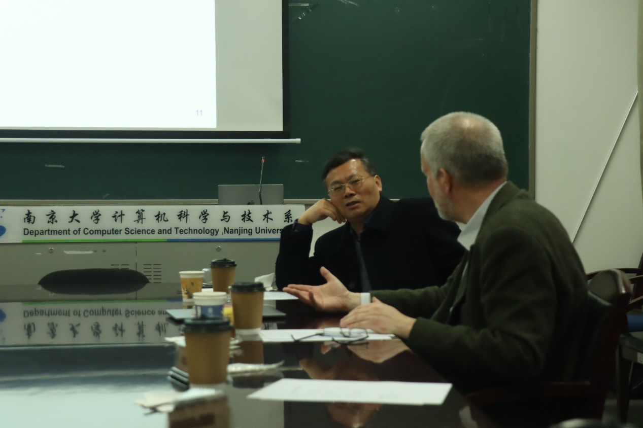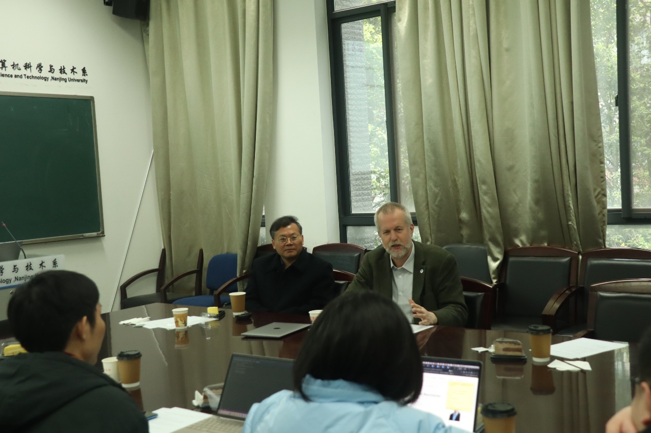 在参观计算机系大楼之际,Espen Aarseth教授详细了解了计算机系的发展历程以及重要科研成果。教授对我校计算机系的蓬勃发展和所取得的科研成果表示赞赏。