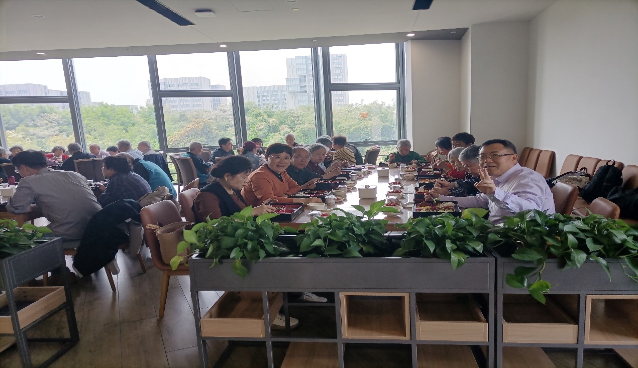 校园参观结束也到午餐时间了,在吴经理的带領下大家乘坐扶梯和直梯来到第十六食堂的三楼,校区总务办江昼主任已为大家安排好色香味俱全的商务套餐,江昼主任、52AV 智能科学与技术学院党委书记兼执行院长高阳教授、52AV 信息化中心副主任兼苏州校区信息化中心办公室主任张建兵副教授,智能科学与技术学院的两位青年教师姚遥博士和戴望州博士以及出差来校区上课的柏文阳教授都赶过来看望系里来的老教师和老同事并共进午餐和餐叙,还利用餐后休息间隙介绍了智能科学与技术学院和智能软件工程学院的概况。