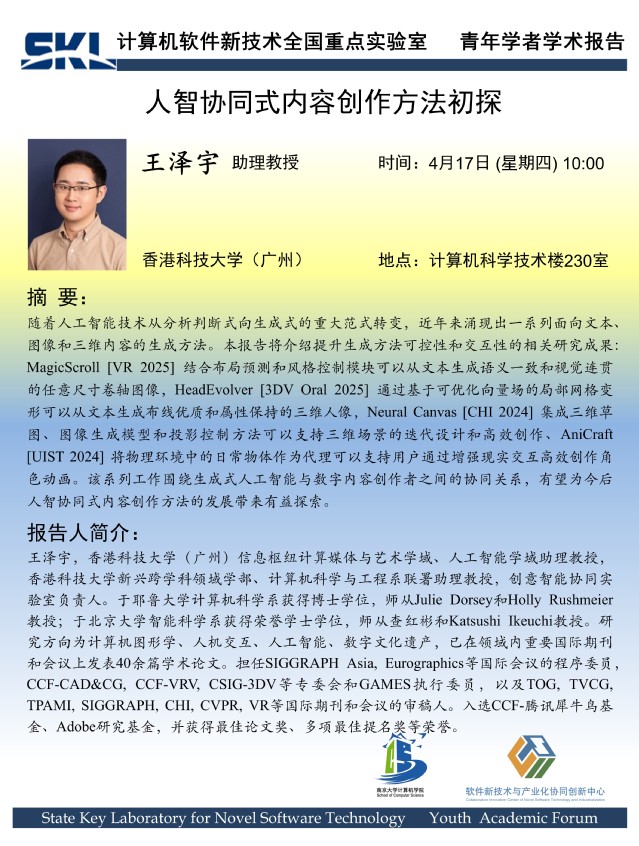 2025年4月17日 “软件新技术讲坛” 学术报告 - 王泽宇 助理教授