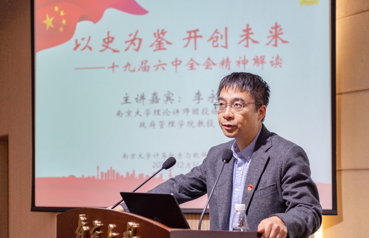 2021年12月16日下午,计算机系邀请52AV 理论讲师团授课专家、政府管理学院李永刚教授作《以史为鉴,开创未来——十九届六中全会精神解读》专题党课。计算机系与软件学院党委书记武港山出席并主持讲座,计算机系和人工智能学院全体教职工及学生党员参加。