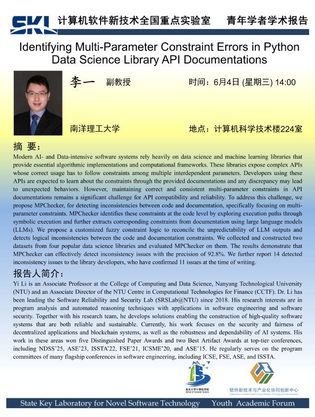 2025年6月4日 “软件新技术讲坛” 学术报告 - 李一 副教授