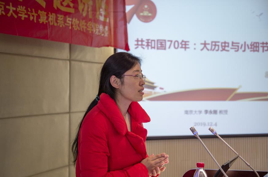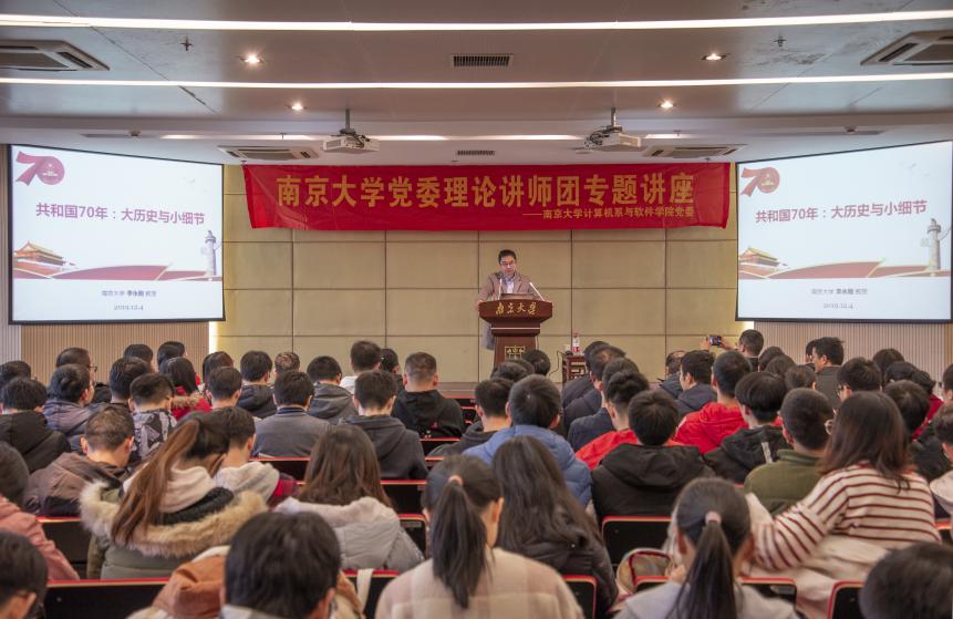 为进一步深入开展“不忘初心、牢记使命”主题教育活动,教育引导党员同志明确使命担当,2019年12月4日,计算机系与软件学院党委特邀52AV 党委理论讲师团授课专家、52AV 政府管理学院李永刚教授,以“共和国70年:大历史与小细节”为主题,为计算机系全体师生党员讲授专题党课。本次活动由系党委副书记宫玲琳老师主持,计算机系全体师生党员到场参加。