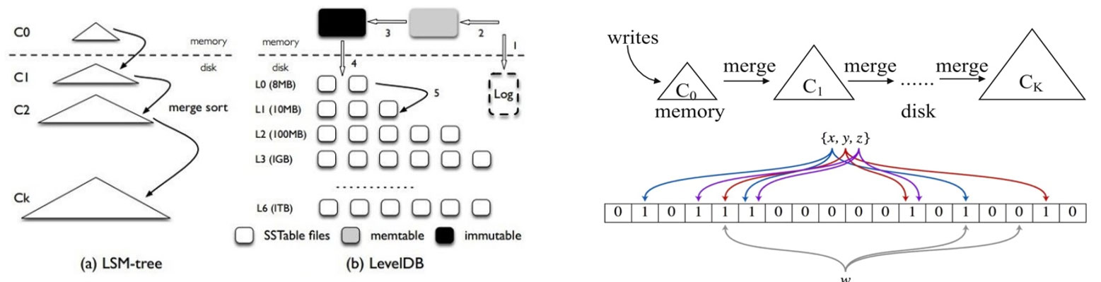 基于LSM-tree的NoSQL层级数据库性能优化 LSM-tree被广泛应用于现代NoSQL系统的存储层,包括BigTable、Dynamo、HBase、Cassandra、LevelDB、RocksDB,与传统索引结构不同,LSM-tree首先在内存中缓冲所有写操作,再将其刷新到磁盘,因此写入效率很高,但牺牲了一定查询效率,我们致力于结合高效的数据结构(如Bloom filter)对查询性能进行优化,以提高数据库查询操作的吞吐量。